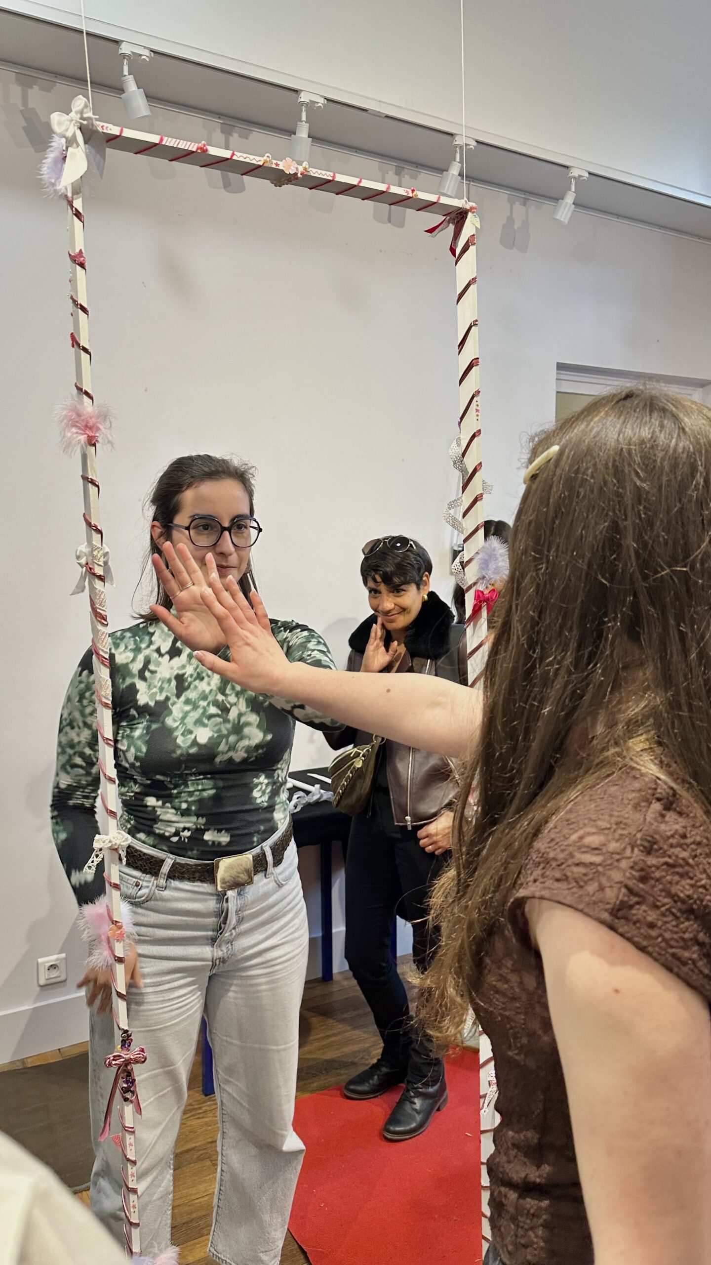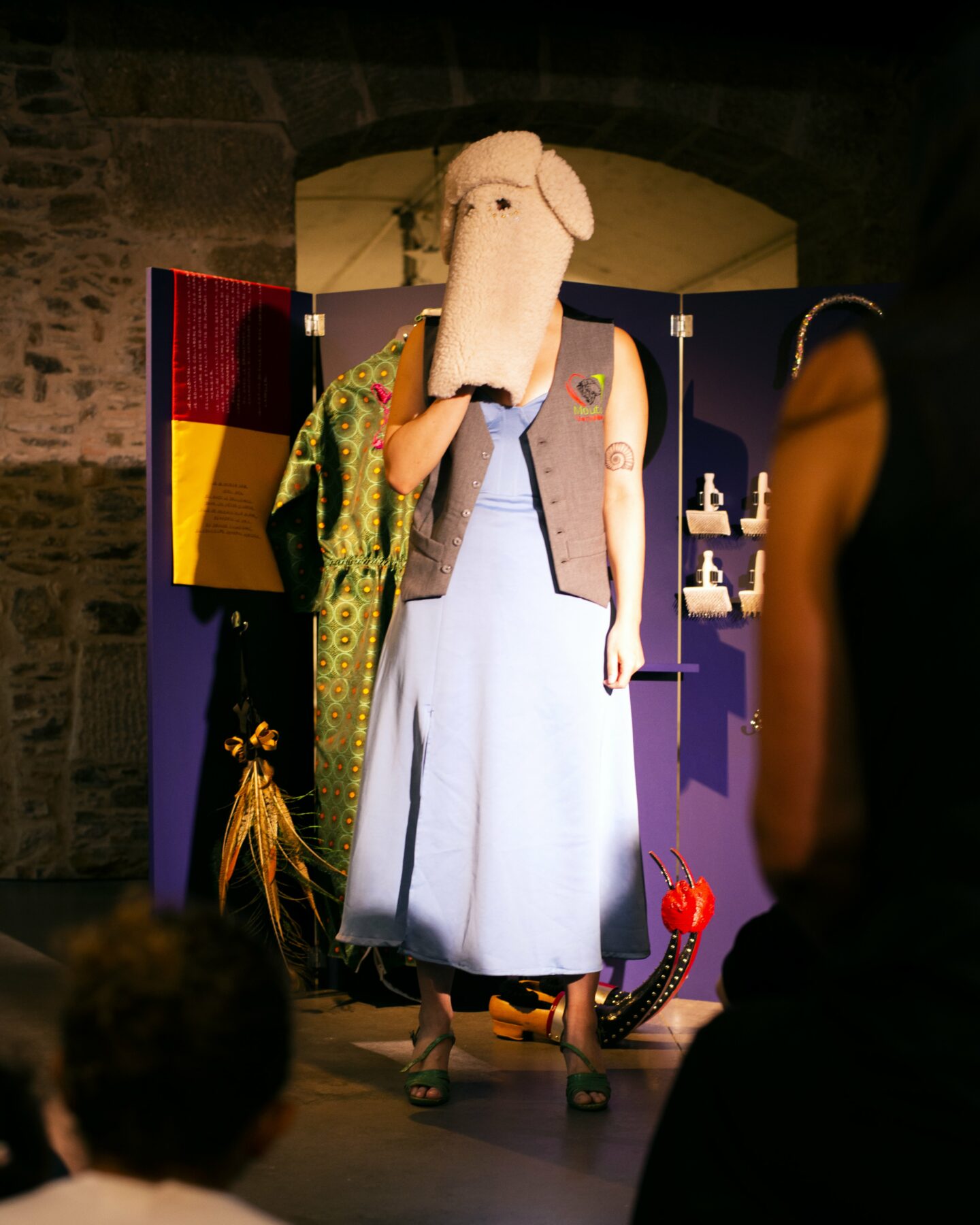 « À la manière d’une magicienne transformiste, je raconte chacune de mes visites au Salon de l’agriculture à Paris. Les récits des protagonistes viennent alors se mêler aux histoires des objets confectionnés pour l’occasion présentés ici sur un paravent. Au fur et à mesure du récit, la magicienne devient tour à tour agricultrice, grande championne du concours général agricole, villageoise bethmalaise, bergère, mouton… »