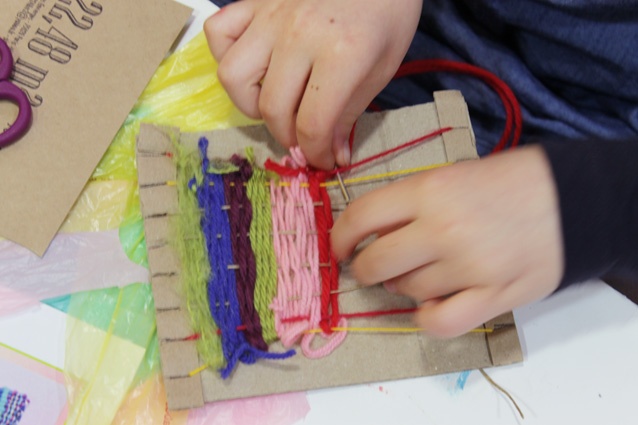 Suite à une visite de l’exposition, qui fût l’occasion d’un première rencontre avec Margaux Pleyber, les élèves participent à des séances de pratique en classe.Fidèle à sa pratique personnelle, Margaux Pleyber propose aux enfants une observation du paysage  à travers le cadre de la fenêtre, des temps de dessin, mais aussi une initiation à la pratique du tissage. Dessus, dessous, les morceaux de textile composent minutieusement la trame d’un ciel, des arbres mouvants, des feuillages ou des couleurs extérieures.